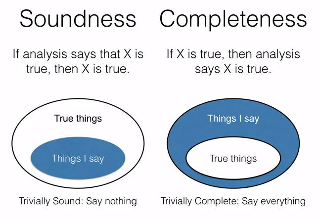 | Reported warnings may contain false positives | Reported problems are real, as observed by a witness input |
